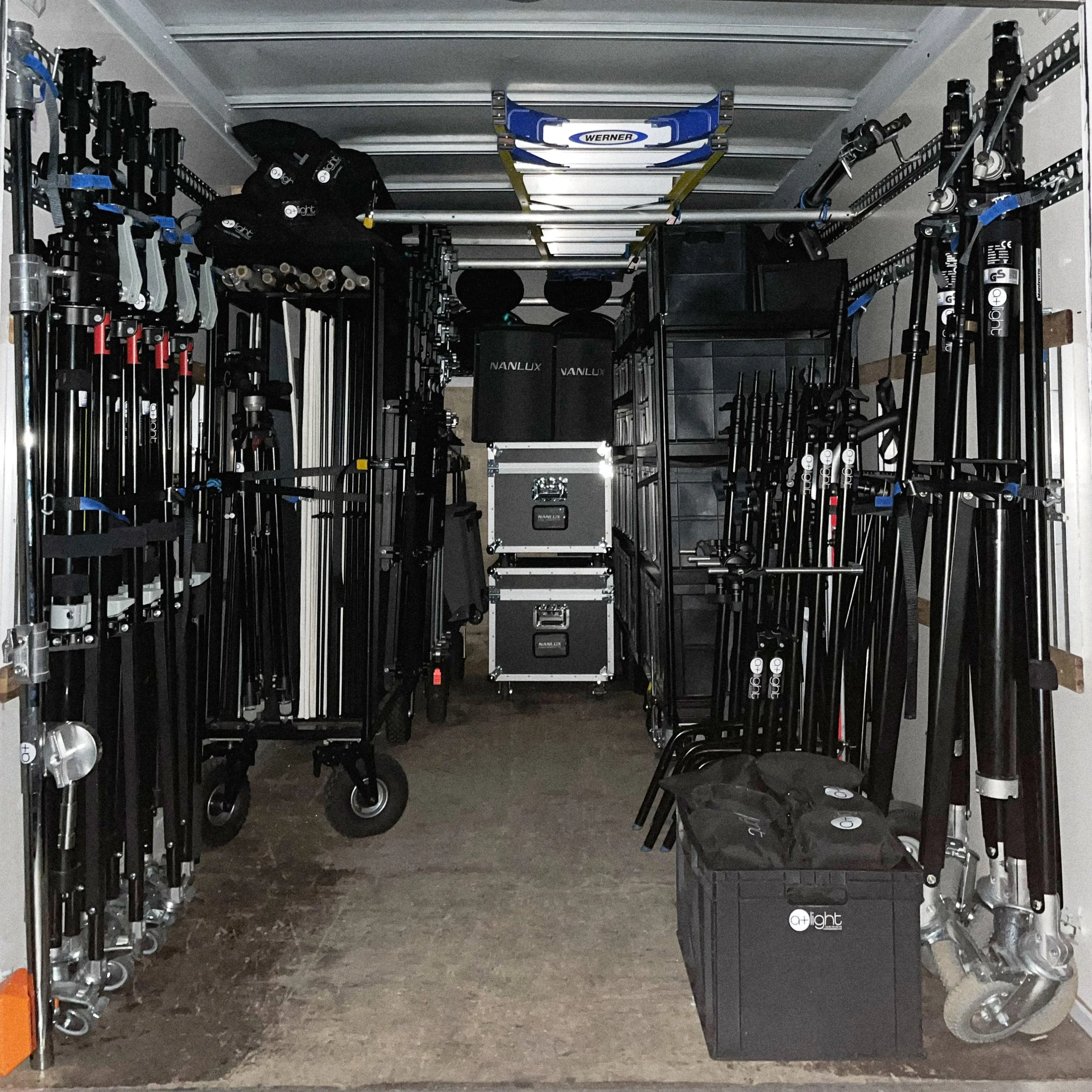 …and on location. the loadout pictured includes: 4x pro 8a packs • 8x proheads • head to pack extensions • b10x plus duo kit • b2 single head kit • a1x • air remotes • 2x nanlux 2400b • 2x nanlux 1200b • 12x12 & 8x8 frame • a selection of 12x12 & 8x8 textiles • 8x8 scrim jim kit • 4x4 floppies, frames and reflectors • flag and net kit • a selection of softboxes, octas and umbrellas • hard reflectors • grid set • 32amp and 16amp distro • comprehensive grip kit • full apple box set • 2x super windups • 4x double windups • 8x combo stands • 8x 40” c-stands • 4x 20” c-stands • d650 boom • mega boom • location cart • step ladders • rolling stools • sandbags • 9’ colorama • bose s1 pro speaker, and more.