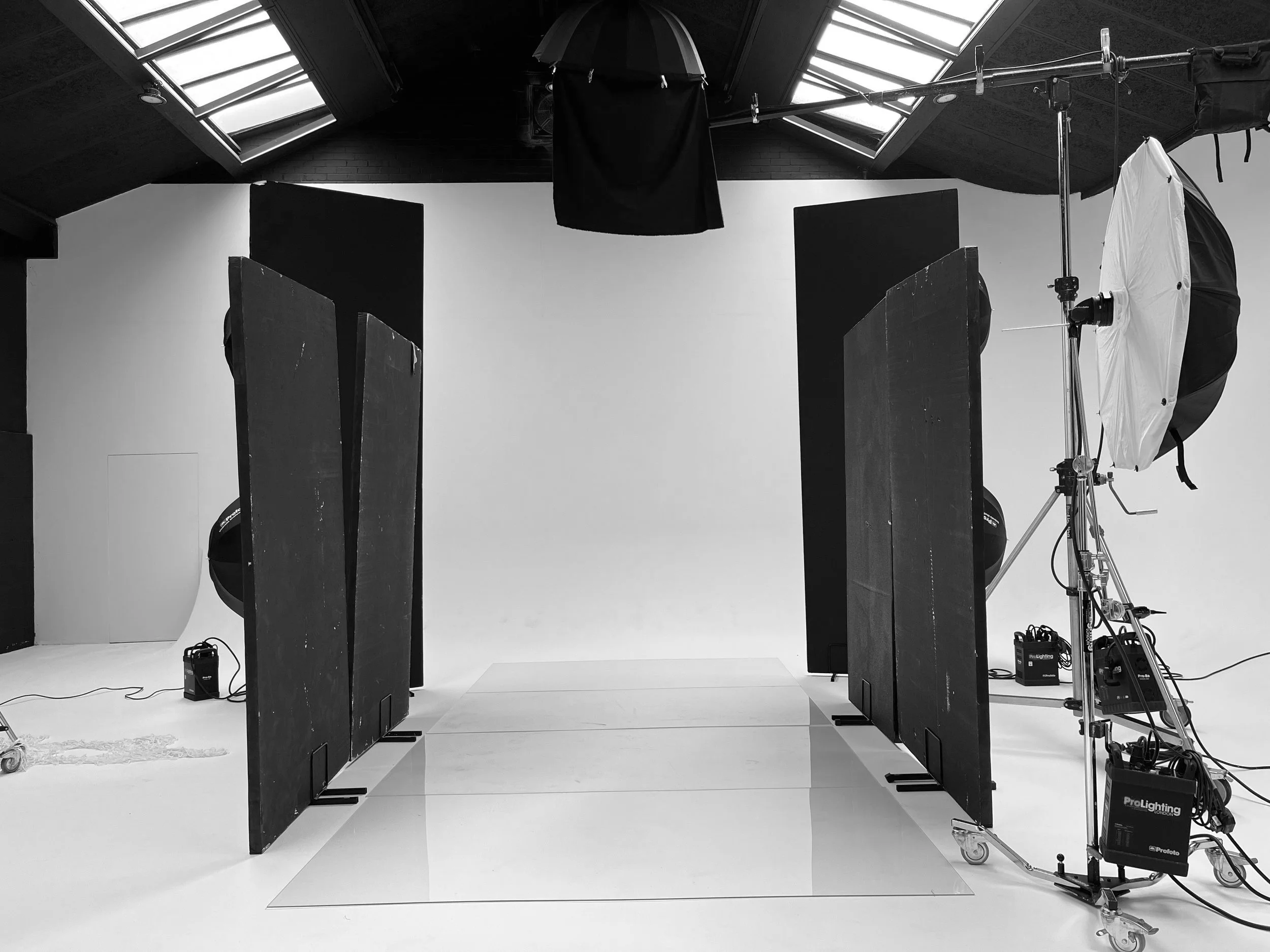 when designing a lighting setup for a project, i aim to create something that’s flexible and easy to adjust to the creative’s needs as the shoot progresses. i want to maximise space, minimise clutter and mess, making sure that we have a clean and pleasant work environment for the day. i love a nice set.